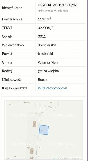 4Na sprzedaż działka rolno-budowlana o powierzchni 1,0134 ha w Ligota gm. Trzebnica. Działka budowlana - powierzchnia 1567 ...